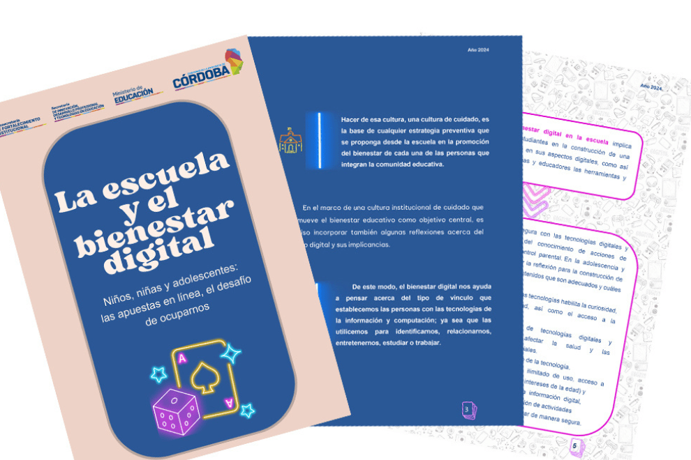 El Ministerio de Educación de Córdoba publicó un documento orientativo sobre la problemática de las apuestas en línea. Se denomina “La Escuela y el Bienestar Digital. Niños, niñas y adolescentes: las apuestas en línea, el desafío de ocuparnos” y está disponible acá.
