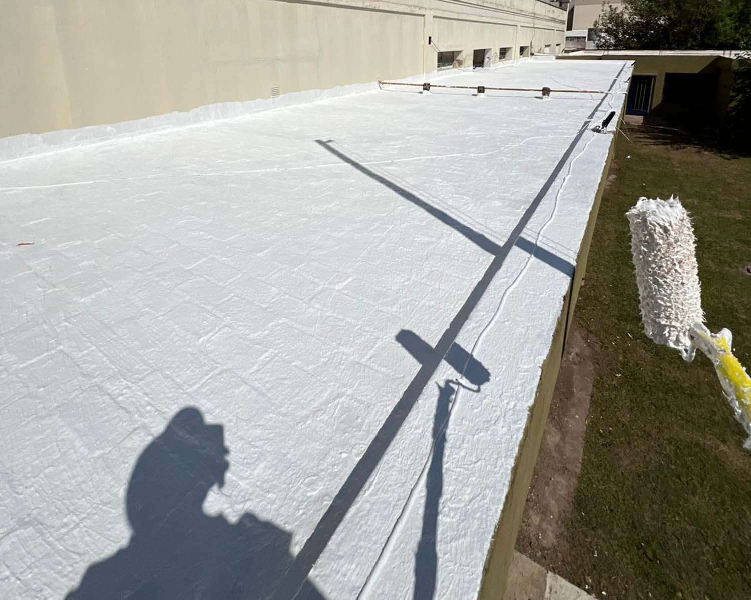 Frente al agua caída, después, ahora hay que aguardar que sequen las zonas “pintadas” con el producto, para regresar por la “segunda o tercera mano” de colocación de impermeabilizante.