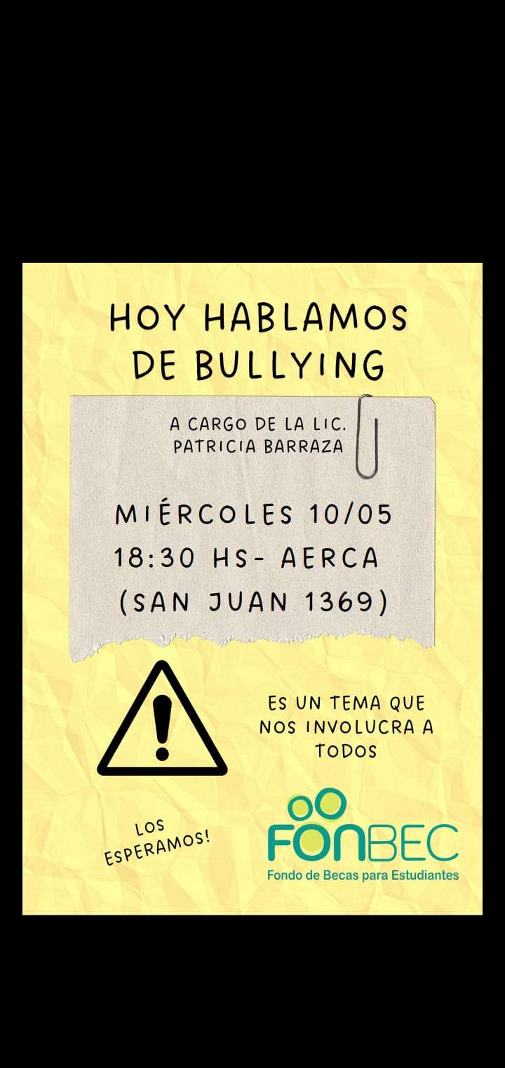 La Asociación FonBec de Villa María organiza una charla sobre la problemática del bullying. Será este miércoles 10 de mayo en la sede de AERCA (San Juan 1369) desde las 18.30 horas.