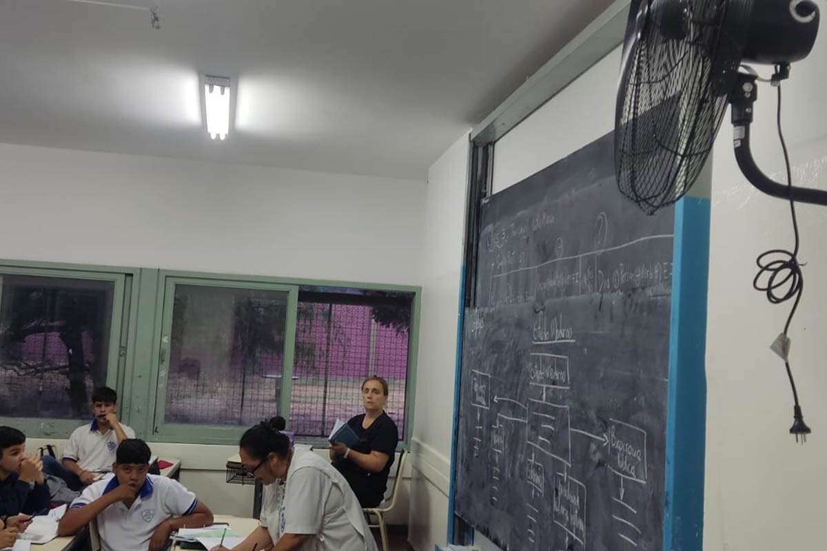 Desde las 7.30 volvió este lunes la presencialidad al Colegio Nacional. De 19 ventiladores instalados durante el fin de semana (cuando la sensación térmica trepaba a los 46 grados) funcionan sólo algunos y el cuerpo directivo y delegados recibieron promesas de boca de la Inspectora. Este lunes con el cambio del tiempo algunos humores bajaron un poco la intensidad.