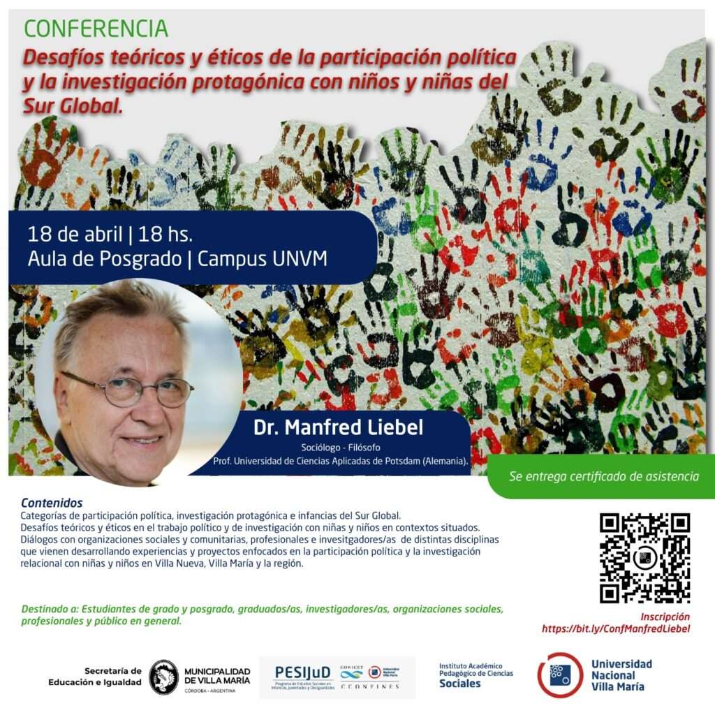 La secretaría de Educación e Igualdad de la municipalidad y el Instituto Académico Pedagógico de Sociales de la Universidad Nacional de Villa María convocan a participar de la conferencia a cargo de Manfred Liebel.