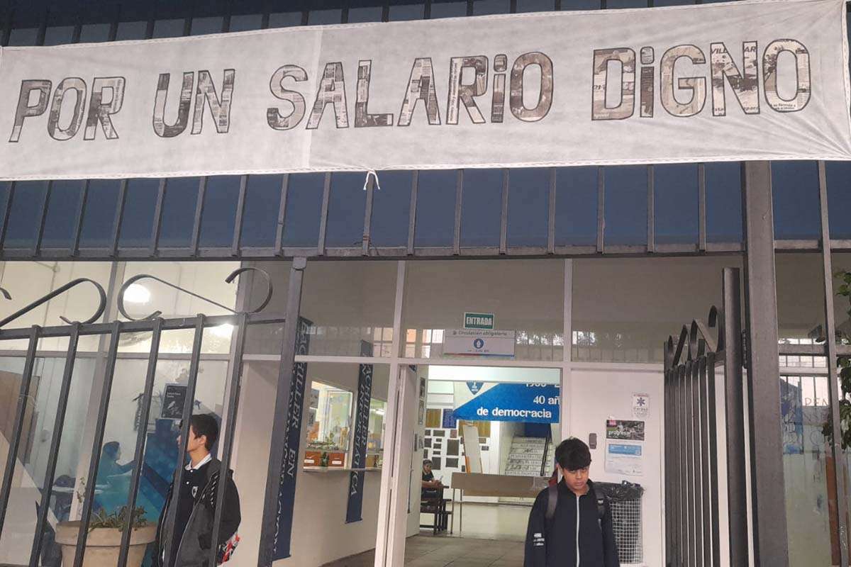Varias escuelas de Villa María aparecen embanderadas con slogans alusivos a este conflicto.