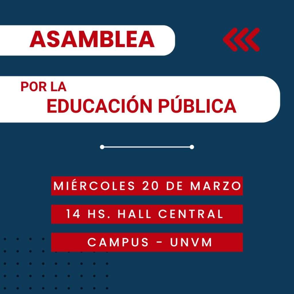 Este miércoles a las 14 horas en el Hall Central del Campus de la Universidad de Villa María se desarrolla una “asamblea por la educación pública”. La actividad es convocada por un conjunto de becarios e investigadores de la UNVM.