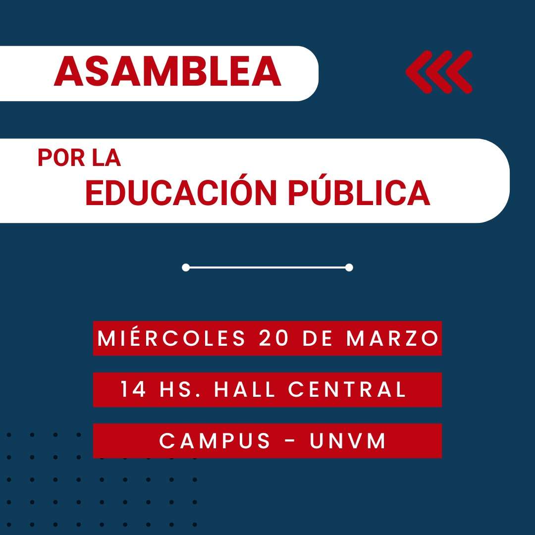 Este miércoles a las 14 horas en el Hall Central del Campus de la Universidad de Villa María se desarrolla una “asamblea por la educación pública”. La actividad es convocada por un conjunto de becarios e investigadores de la UNVM.