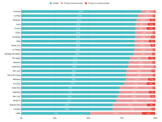 privado, por provincia. Todos los niveles a cargo de las provincias. Fuente: Elaboración del Observatorio Argentinos por la Educación en base al Relevamiento Anual y a CGECSE.
