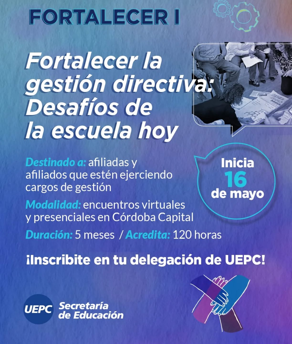 La Delegación San Martín de UEPC invita a afiliados y afiliadas a participar del curso “Fortalecer la gestión directiva: Desafíos de la escuela hoy”.