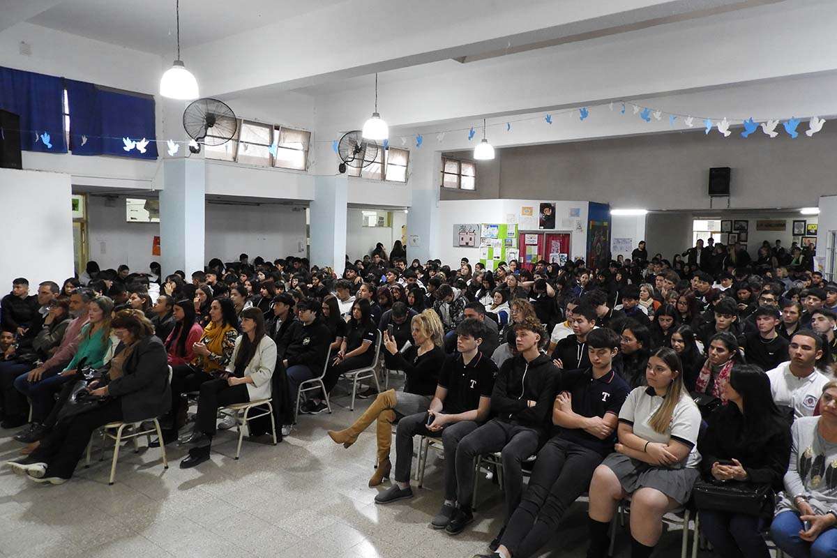 Zanotti: “Los adultos no tienen respuestas para darles porque los paradigmas cambiaron. Los siguen educando, y le siguen hablando, bajo un paradigma de un mundo que ya no existe. Tenemos que vincularlos a los jóvenes, y no con los temas que a mí me interesan, con los que a ustedes les interesa. La mayoría de los jóvenes sienten un gran vacío es como consecuencia de la abrumadora oferta de posibilidades que hay, en todo sentido, y la incapacidad de los adultos de poder guiarlos para que descubran sus intereses y sus talentos. ¿Saben por qué? Porque casi en ninguna institución educativa de la ciudad tiene talleres, por ejemplo, de educación emocional. Es allí donde descubren quién son, qué les interesa, cuáles son las motivaciones. En definitiva, quién los inspira. Nosotros los vamos a ayudar para que descubran el qué. Vamos a trabajar en programas de prevención de adicciones, equilibrio alimenticio y vamos a democratizar el conocimiento: que todos tengan talleres en programación, robótica, y apoyar a aquellos que quieran trabajar con microemprendimientos productivos. Además vamos a apoyar desde el municipio a todas las promociones para que nadie se quede sin su viaje de estudio”.
