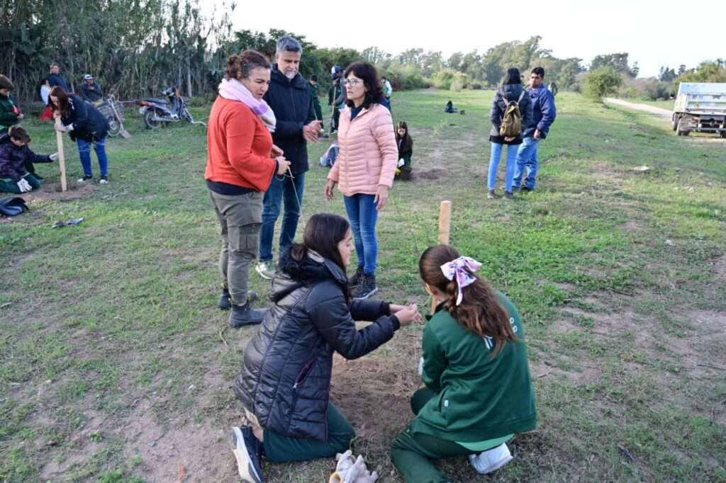 En una actividad articulada con el Instituto Mariano Moreno, que también celebra su centenario con el proyecto “100 años, 100 árboles”, alumnos de 6° grado ubicaron 30 unidades arbóreas en el espacio verde, en una tarea que promueve la conciencia ambiental.