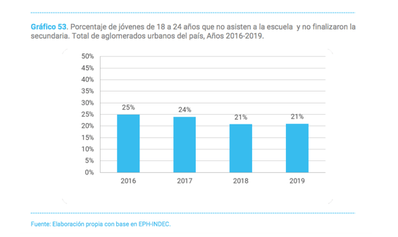 Como consecuencia de esta definición, hemos tenido un importante crecimiento en los indicadores que, aunque por supuesto deben seguir mejorando, no pueden negarse ni dejar de ser considerados en los respectivos análisis. Antes de la obligatoriedad de la Educación Secundaria (2006), más de la mitad de los jóvenes de 20 a 29 años (52%) no contaban con el certificado que brinda la educación secundaria [1]. A partir de la implementación de la obligatoriedad, ese porcentaje fue creciendo hasta superar el 70% en la actualidad.