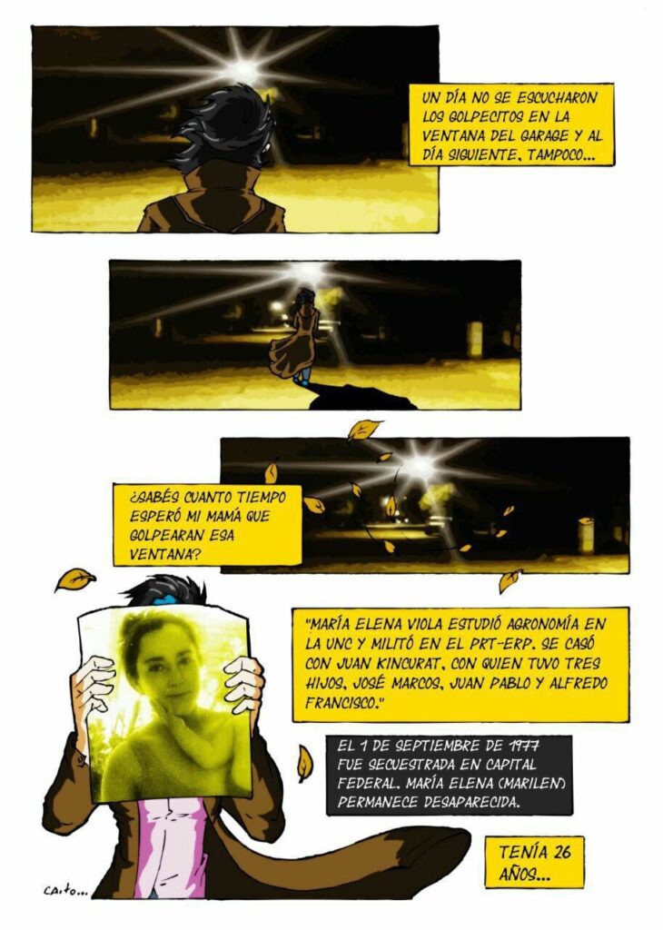 Las temáticas de Memoria, Verdad y Justicia no quedan por fuera de los intereses de Caíto a la hora de dibujar. “El Eternauta estaba prohibido cuando nací. También por eso creo que me llegó bastante tarde. Y al día de hoy creo que no habría hecho todo lo que hice en el 2015 de no haber sido por El Eternauta”, indica.