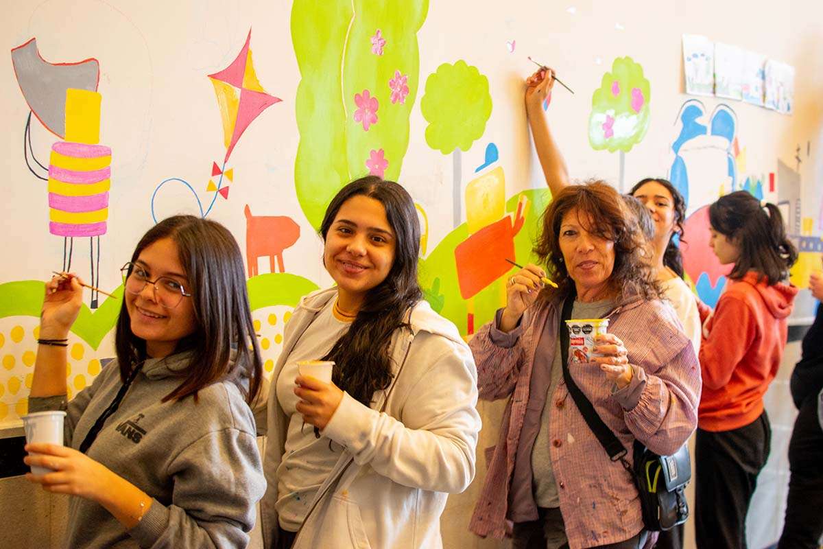 Estudiantes del Rivadavia pintaron un mural colaborativo en el Centro Cívico