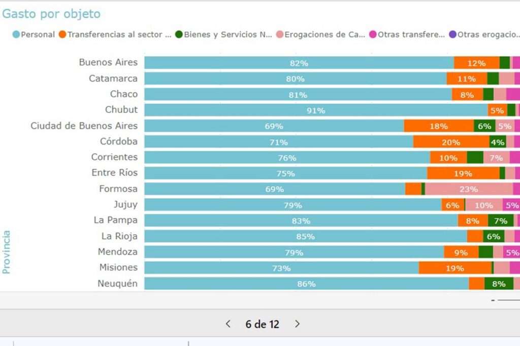 En los detalles también se puede observar que todas las jurisdicciones dedican más del 65% de su inversión educativa sólo al pago de salarios.