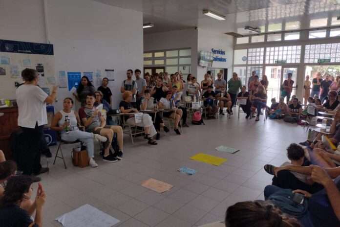 Las asambleas comenzaron en febrero de este año. Becarios y becarias de las distintas Unidades Ejecutoras del CONICET en la UNVM vieron la necesidad de reunirse frente a la falta de presupuesto en educación y los recortes a la ciencia. “Lo que le pasa a la universidad también repercute en nosotros y nosotras como
