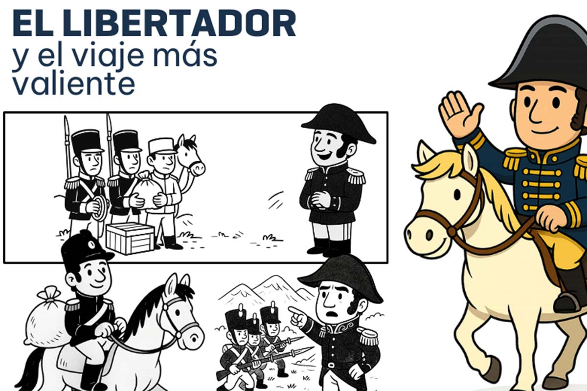 Dirigida especialmente a niñas y niños de 8 a 12 años, esta historieta recrea la ayuda que Córdoba brindó al Ejército de los Andes en su travesía para liberar a Chile del dominio realista. A través de un lenguaje visual ágil y atractivo, narra las cartas enviadas por San Martín solicitando recursos clave como alimentos y azufre para la fabricación de pólvora, y el esfuerzo conjunto que permitió sostener la gesta.