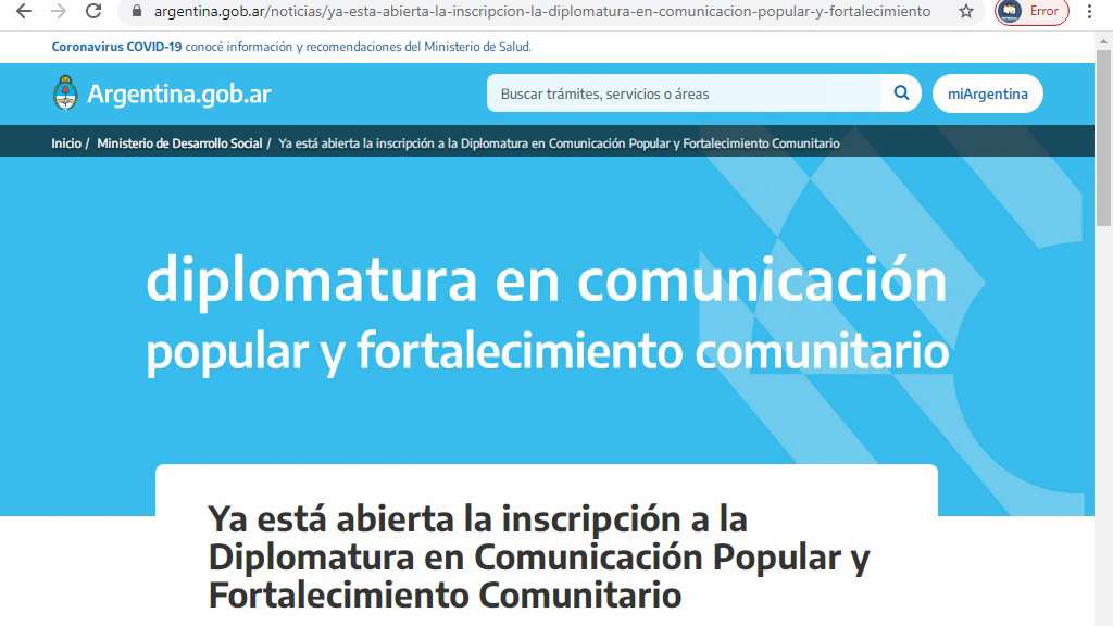 El Ministerio de Desarrollo Social de la Nación tiene abierta las inscripciones para la Diplomatura en Comunicación Popular y Fortalecimiento Comunitario.