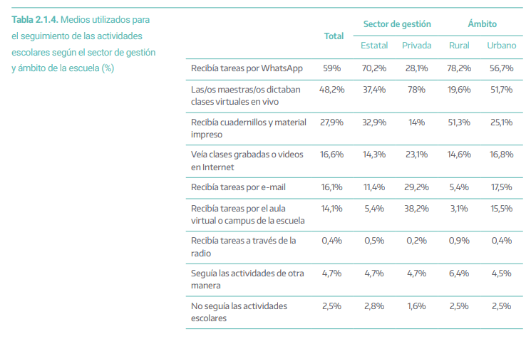 La modalidad Whatsapp fue la más utilizada para el seguimiento de las actividades escolares en el sector de gestión estatal, según indicaron un 70,2% de las y los estudiantes.