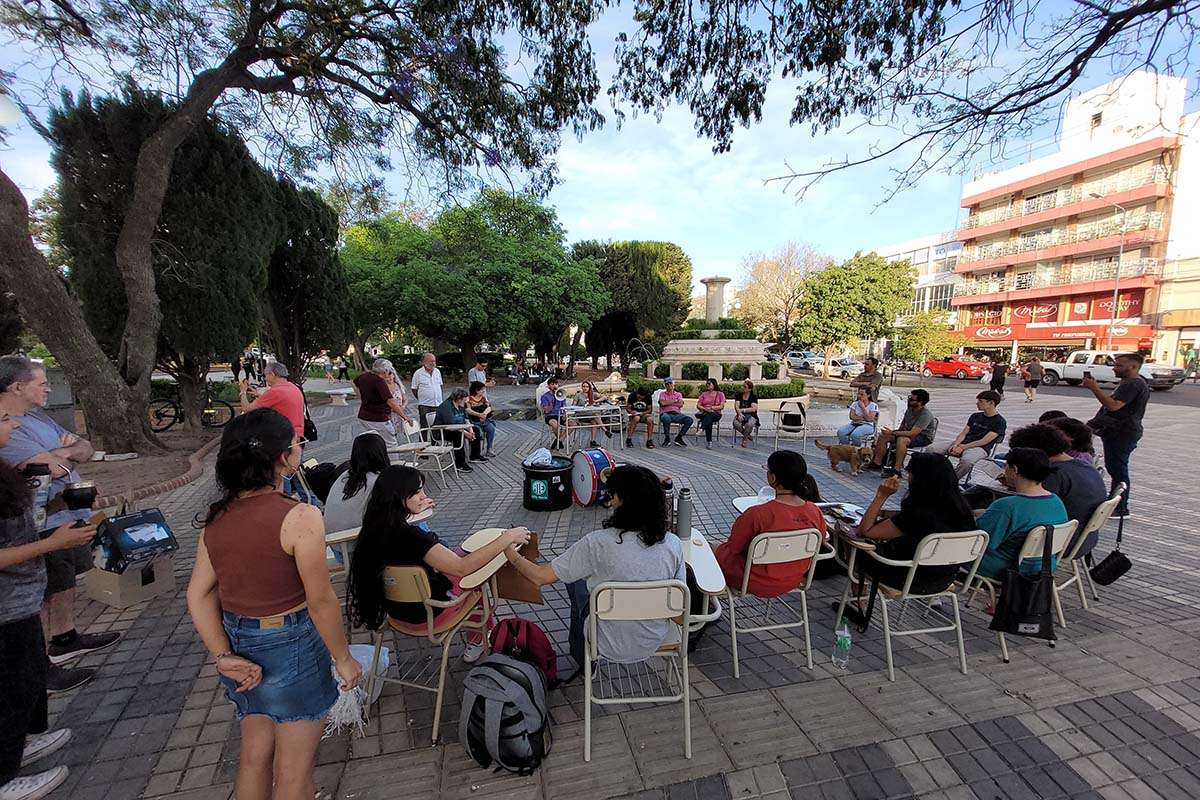 Estudiantes de la UNVM escenificaron una clase pública en la Plaza Centenario donde ratificaron la voluntad de esa Asamblea Universitaria de continuar en la idea de “traer el Campus a la ciudad”. Esas acciones, que incluyeron marchas y ollas populares, tienen como finalidad seguir solicitando un mejor presupuesto universitario y rechazar el veto presidencial a la Ley de Financiamiento.