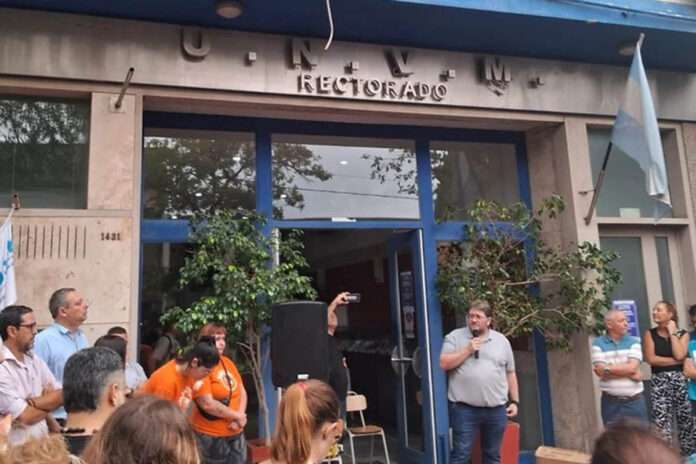APUVIM (adherido a nivel nacional a FATUN) convocó, junto a ADIUVIM, estudiantes y becarios CONICET, a trabajadores y trabajadoras a una concentración que tuvo como escenario el frente del Rectorado.