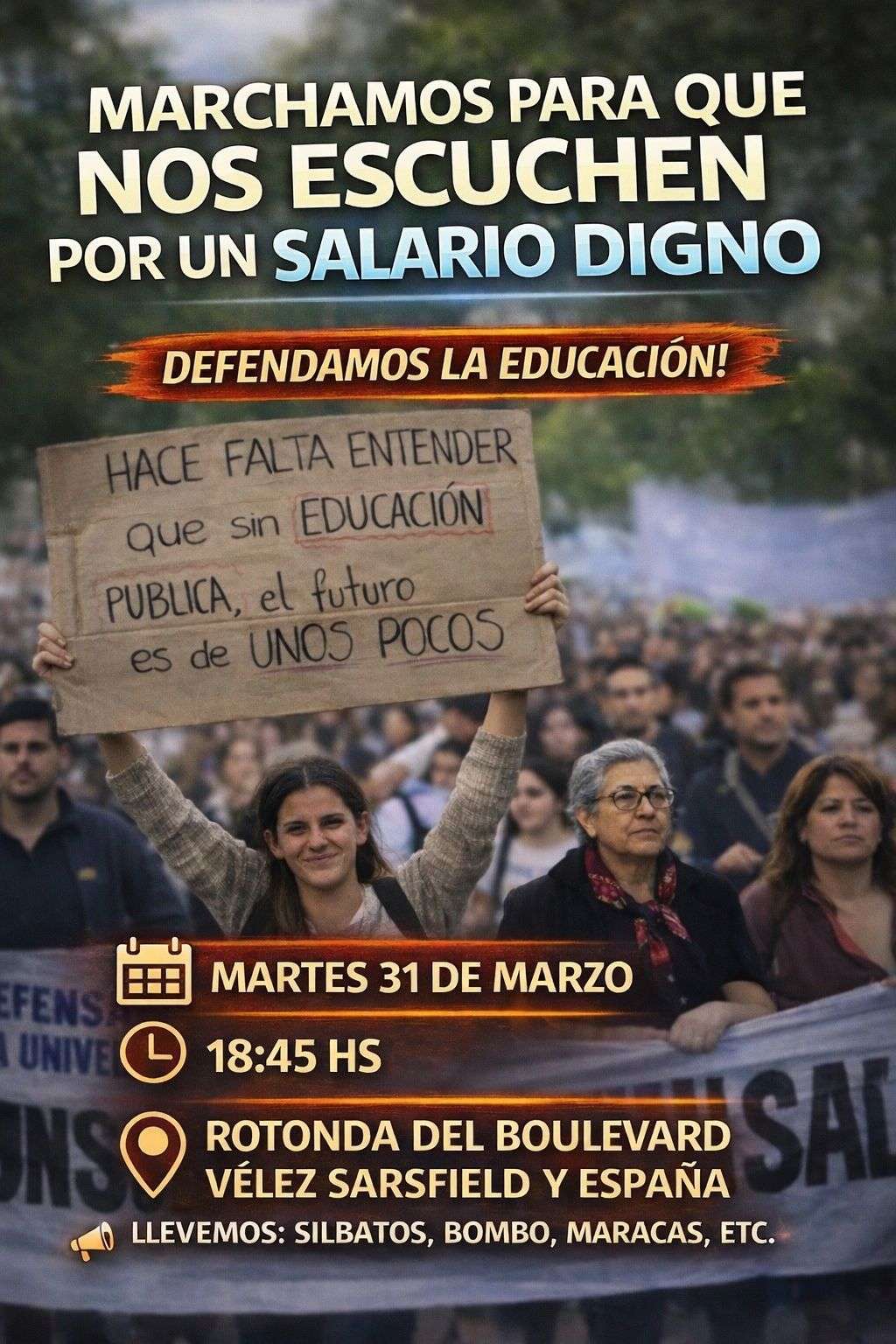 Mientras tanto, a su vez, docentes autoconvocados llamaron a movilizar para este martes 31 de marzo, desde las 18.45, en la intersección de los bulevares España y Vélez Sarsfield, mitin similar al ocurrido en inmediaciones de la Plaza Centenario, el 18 de marzo pasado.
