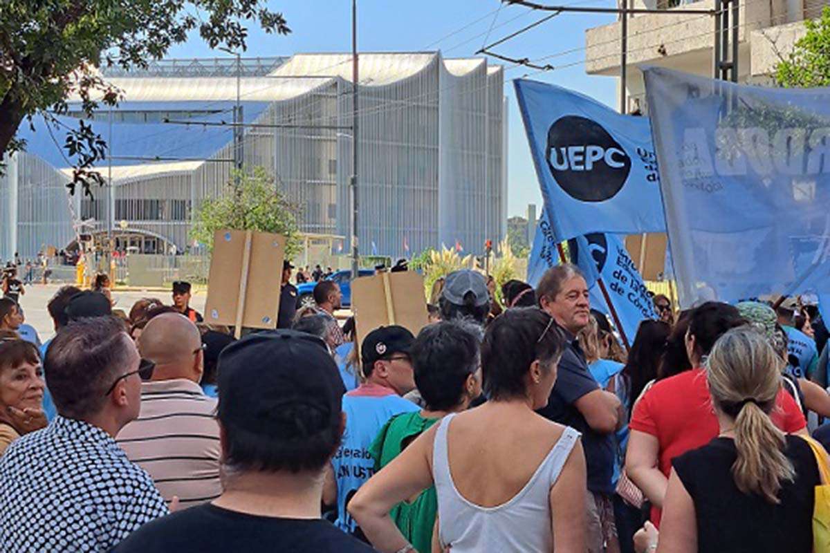Una concentración de docentes, apoyados por otros gremios, se movilizaron afuera de la Legislatura mientras el gobernador, Martín Llaryora, anunció acciones de gestión abriendo las sesiones legislativas.