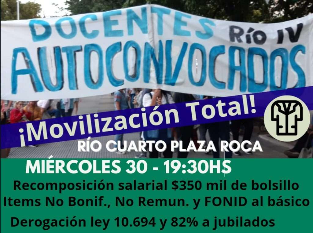 Autoconvocados Villa María organiza una manifestación pública para el día en que estaba planteada la medida de fuerza: será el miércoles desde las 19 en Plaza Centenario. Es más, algunas ciudades del territorio cordobés ya adelantaron que saldrán a las calles el propio miércoles por la tarde.