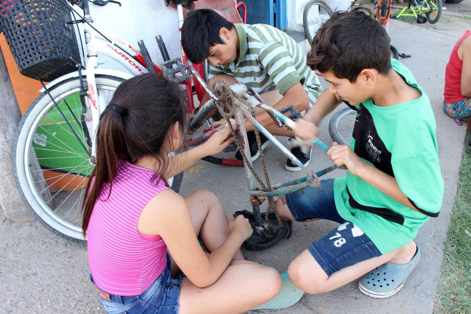 Además, comenta: “Después de tantos años, los chicos ya conocen la lógica. Entonces llegan, sacan las herramientas, van preguntando, piden ayuda para sacar una rueda, sacar una cubierta…”. Y esto sucede todos los jueves, de 17 a 19 horas, junto con una merienda de la que se encarga el grupo de mujeres del Pince.