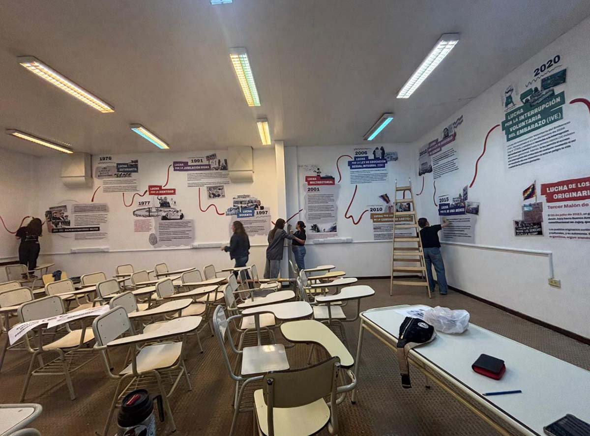 En sus paredes se incluye un mural artístico que recupera la memoria colectiva sobre las luchas populares registradas entre 1976 y 2024.