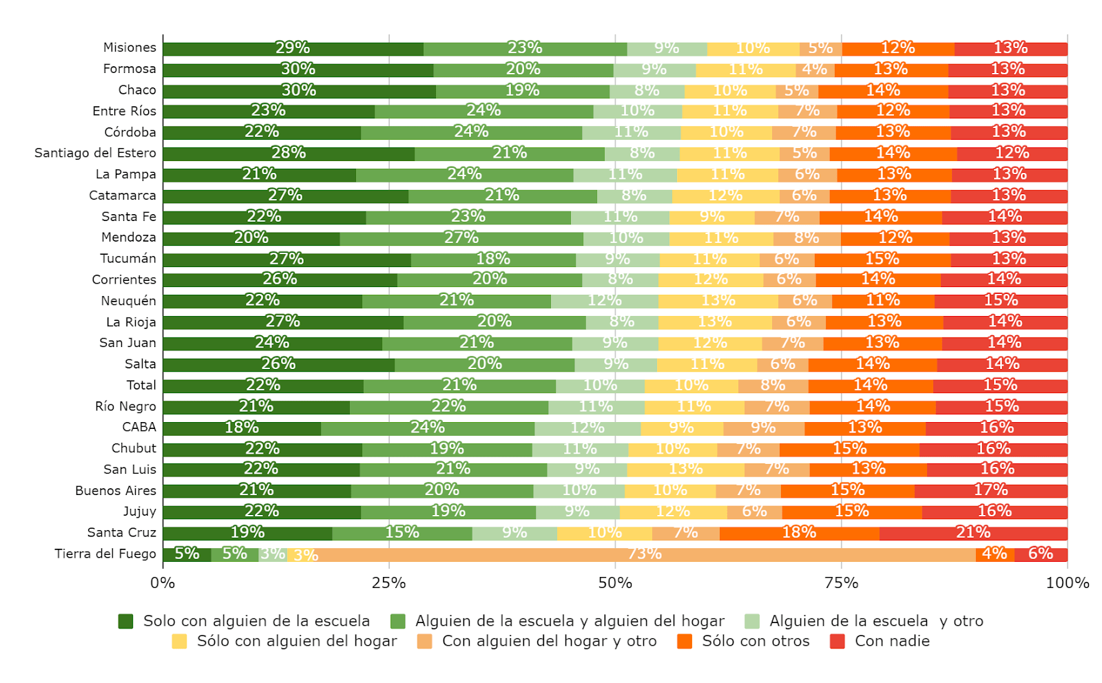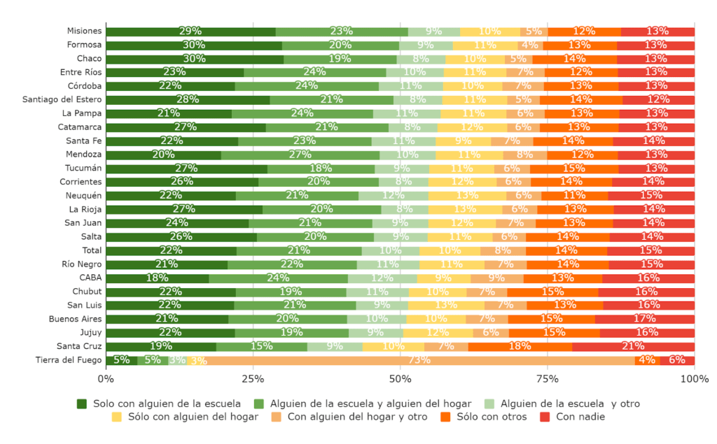 Las provincias con mayor porcentaje de alumnos que hablan de violencia familiar en la escuela son Misiones (60,1%), Formosa (58,9%), Chaco (57,7%) y Entre Ríos (57,3%). Pero hay un punto clave que tenemos que abordar: el 15% de los chicos no habla con nadie sobre estos temas.