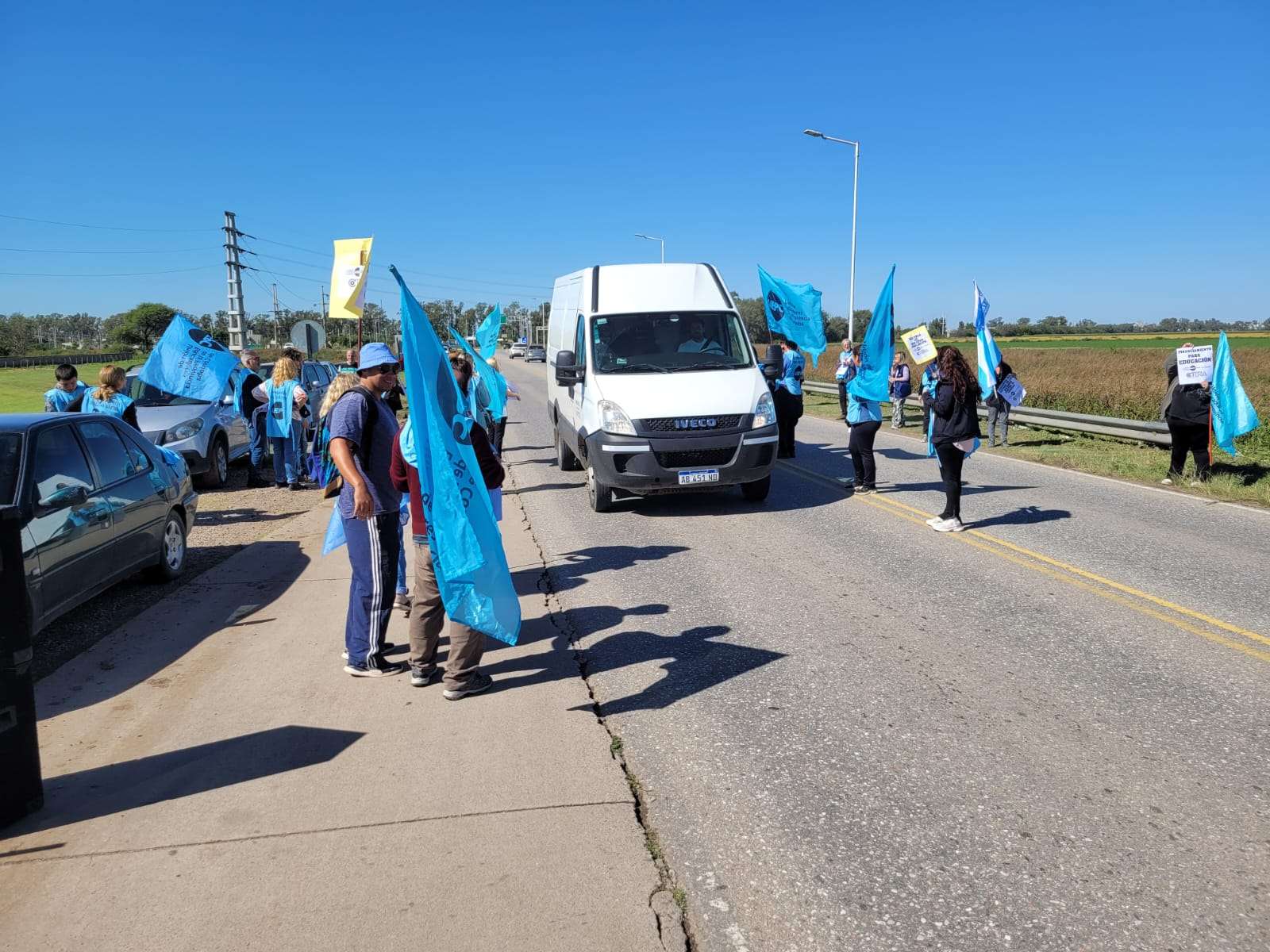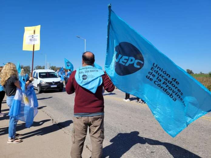 Con la participación de alrededor de 30 personas, la UEPC movilizó este jueves en la vera de la autopista 9 para visibilizar la situación que atraviesan las y los docentes.